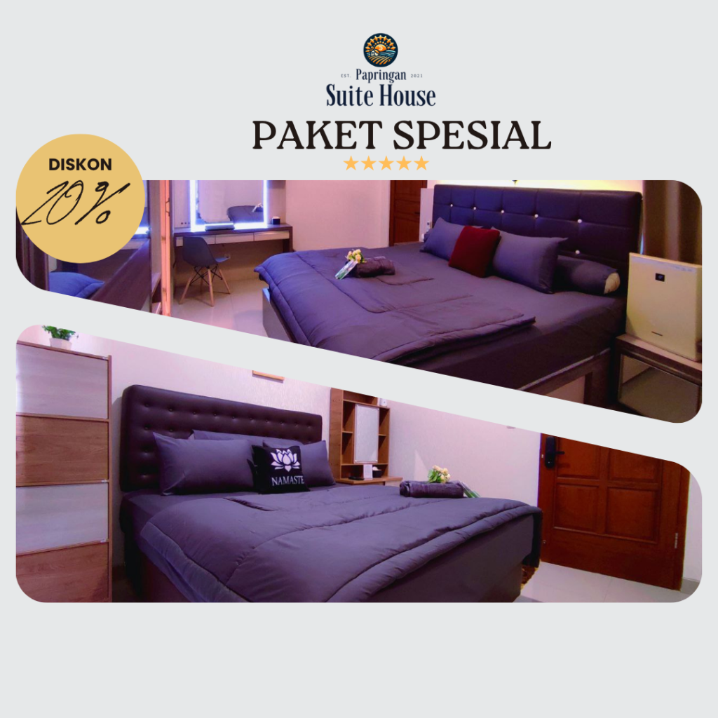 Mulai dari sprei berkualitas hingga kebersihan yang selalu kami jaga, setiap detail dirancang untuk kenyamanan total Anda. Istirahat nyenyak dan pulihkan energi Anda bersama papringan Suite house.